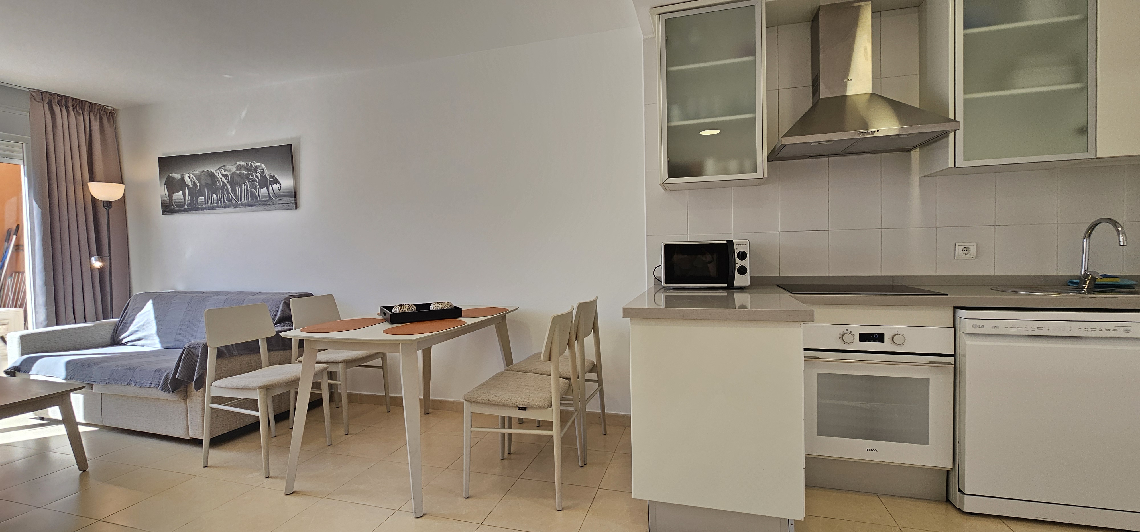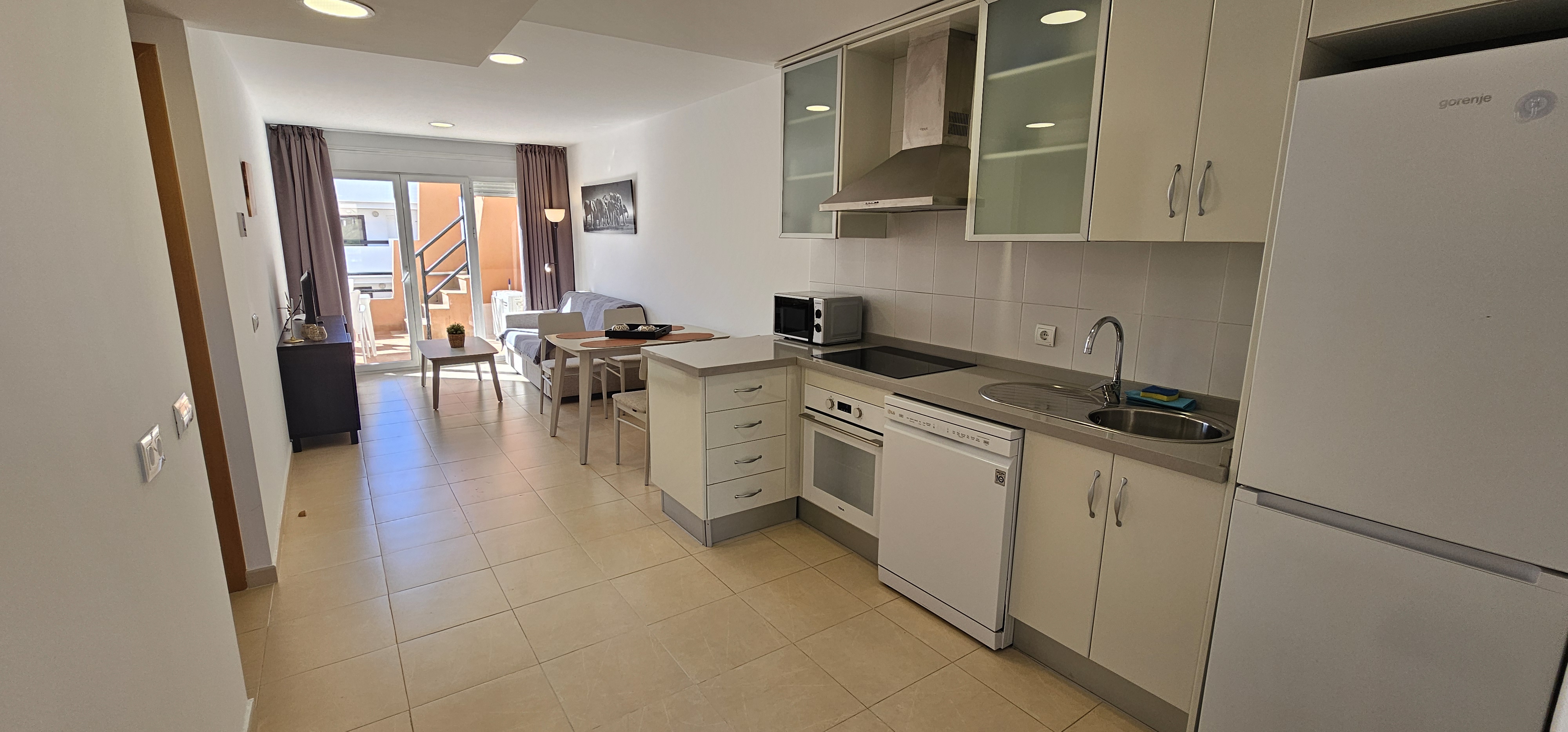 Recent gerenoveerd appartement. Het appartement bestaat uit een woon/eetkamer, keuken met koelkast en vriezer, magnetron, oven, keramische kookplaat, afzuigkap, vaatwasser en koffiezetapparaat (Nescafe Dolce Gusto ). Woonkamer met een flatscreen-tv.