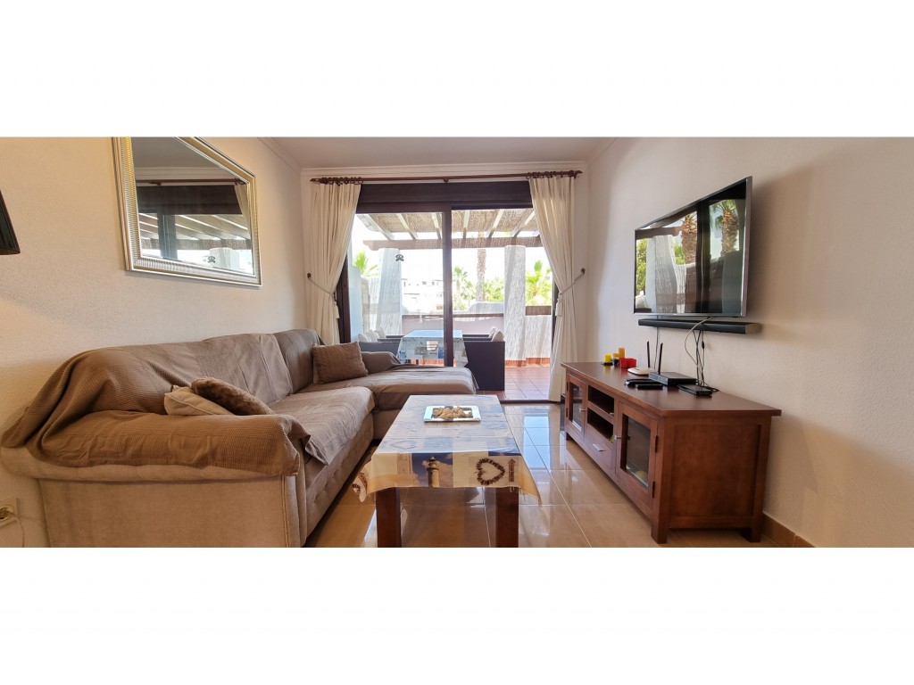 Fully furnished apartment with 2 bedrooms, 2 bathrooms, one bathroom en-suite. Kitchen with fridge/ freezer, dishwasher, oven, microwave, extractor and induction cooking plate. The apartment is equipped with a washing machine, ironing board/ironer and all kinds of kitchen utensils , living room with TV smart with spanish channels. German/ Belgian satellite TV available on request.. Air conditioning system (cold/warm). Terrace with view over the swimming pool. Private covered parking. WIFI.