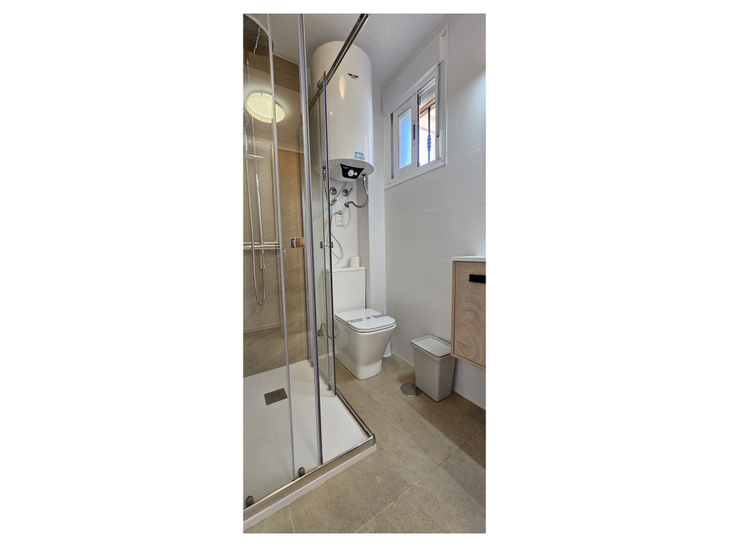 El apartamento consiste en un salón/comedor, cocina abierta con frigorífico, microondas, horno, vitrocerámica, campana extractora y lavavajillas. 2 dormitorios. Hay 2 baños, uno con lavabo, inodoro y ducha italiana. El otro baño con lavabo y inodoro. El apartamento está equipado con aire acondicionado frío/calor en toda la casa.