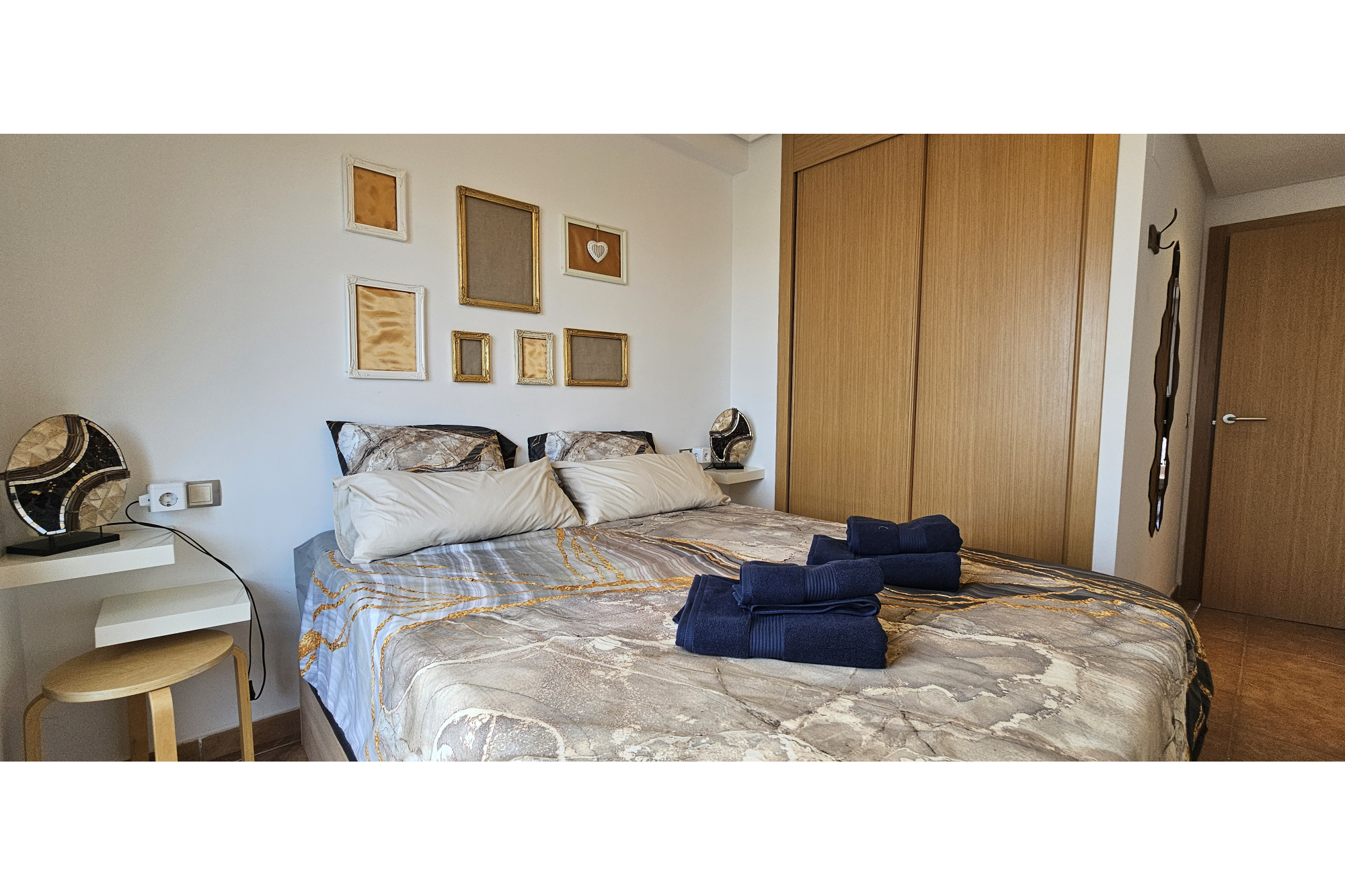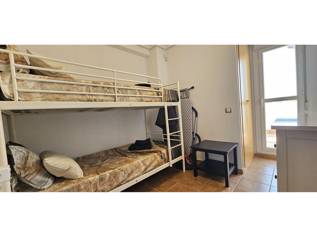 En el apartamento pueden alojarse 4 personas. Hay 2 habitaciones, una con cama matrimonio y otra con literas. 1 baño con bañera. Salón comedor muy luminoso con acceso a la terraza. La cocina está totalmente equipada y dispone de frigorífico y congelador, vitrocerámica, horno eléctrico, microondas, lavavajillas y lavadora. El apartamento tiene aire condicionado frio/calor por conducto en toda la casa. WiFi.